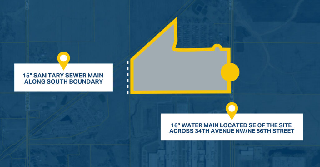 - 16” water main located southeast of the site across 34th Avenue NW/NE 56th Street